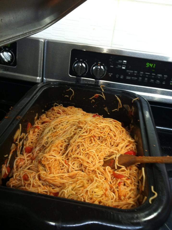 Skyline Rotarians Julie, Aaron, Wei, Liz, Graham, and Trevor and Rotaractors Ben and Faiyyad gathered at the Fort York Food Bank on the morning of April 20, to devise, prepare, and cook a most scrumptious meal. Through a combination of will, ingenuity, stick-to-it-ive-ness, and several pounds of chicken and pork… a lunch to rival many-a-lunch was constructed. To start, Ben rocked a solid salad, complete with scrumdiddly-umptious tomatoes and Montreal style bagels turned croutons. Julie et al. whipped-up delicious baked chicken thighs and legs, a pork roast and roasted tomatoes. Aaron prepared some coffee and tea, ad interim Trevor toiled-away at opening some 6 cans o’ tomato sauce sans working can-opener. The goal, you ask? To create a fantabulastic spaghetti sauce. And delicioso ’twas! Aaron attempted to cook some rice – but failed quite miserably, so he returned to doing what he does best… Awesome stuff. Wei recovered some rice, stir fry style. The lunch crew finished with a good 45 minutes to spare, at which time they proceeded to engage in riveting, yet serious debate. Lunch was served to exceedingly happy patrons, dishes were washed by exceedingly tired cooks, and we all hung our aprons with satisfaction knowing that yet another great day at the FYFB was had.