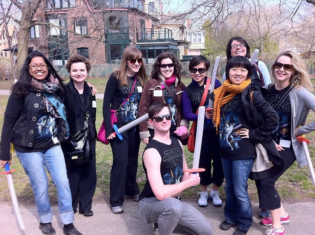 17 members of Toronto Skyline walked as team Skywalkers on the boardwalk of Ashbridges Bay. To go with the Star Wars theme, the team walked with Star Wars T-shirts, light sabers and a dog in a Princess Leia costume! During the walk we witnessed a few light saber battles between the Rebel Forces and Galactic Empire. Also, Princess Leia was desperately looking for Obi Wan so she can get out of her costume, it was her only hope.